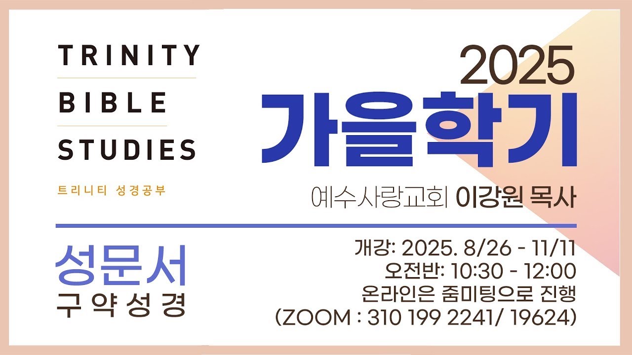 페이지 정보 작성자 예수사랑교회 댓글 0건 조회 101회 작성일 25-10-19 16:02 목록 본문 하나님의 성전 고린도전서 3:1-9, 16-17 이강원 목사 2025-10-19 예수사랑교회 주일 설교 이강원 목사 10/19/25 "하나님의 성전" 고린도전서 3:1-9, 16-17 이전글판단하게 될 때 25.10.26 다음글섭리 25.10.12 댓글 0 댓글목록 등록된 댓글이 없습니다. 목록